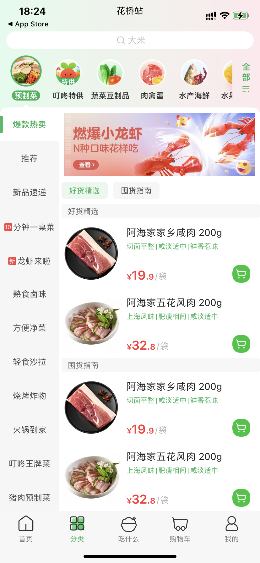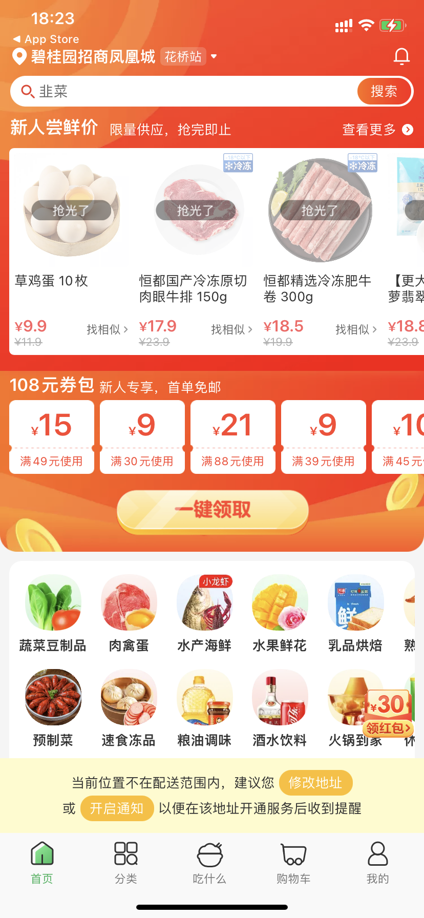 最后一种就是多品种多店定制开发模式了,如下图类似于美团与叮咚买菜,如果需要开发这样的小程序基本上都是比较实力的企业与运营团队了,费用就需要具体项目具体费用了。如果有不清楚的可以随时联系咨询,我们会给您建议性高性比的外场小程序开发方案。